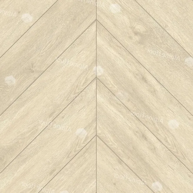 Тип плитки — ABA ламинат толщиной 8 мм, что делает его подходящим для использования в помещениях с повышенной проходимостью. Класс износостойкости — 43, это гарантирует долговечность покрытия и его способность выдерживать значительные нагрузки. Цвет — бежевый, дизайн — ёлочка, текстура напоминает натуральный дубовый паркет.