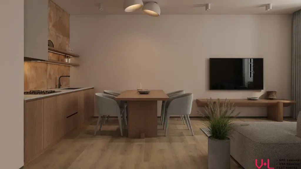Элегантная фаска подчеркивает форму каждой плитки, создавая визуальный эффект классической деревянной доски и добавляя интерьеру рельефность и глубину. Монтаж осуществляется клеевым способом, который обеспечивает надежное и долговечное крепление покрытия к основанию.