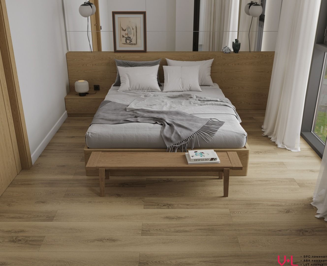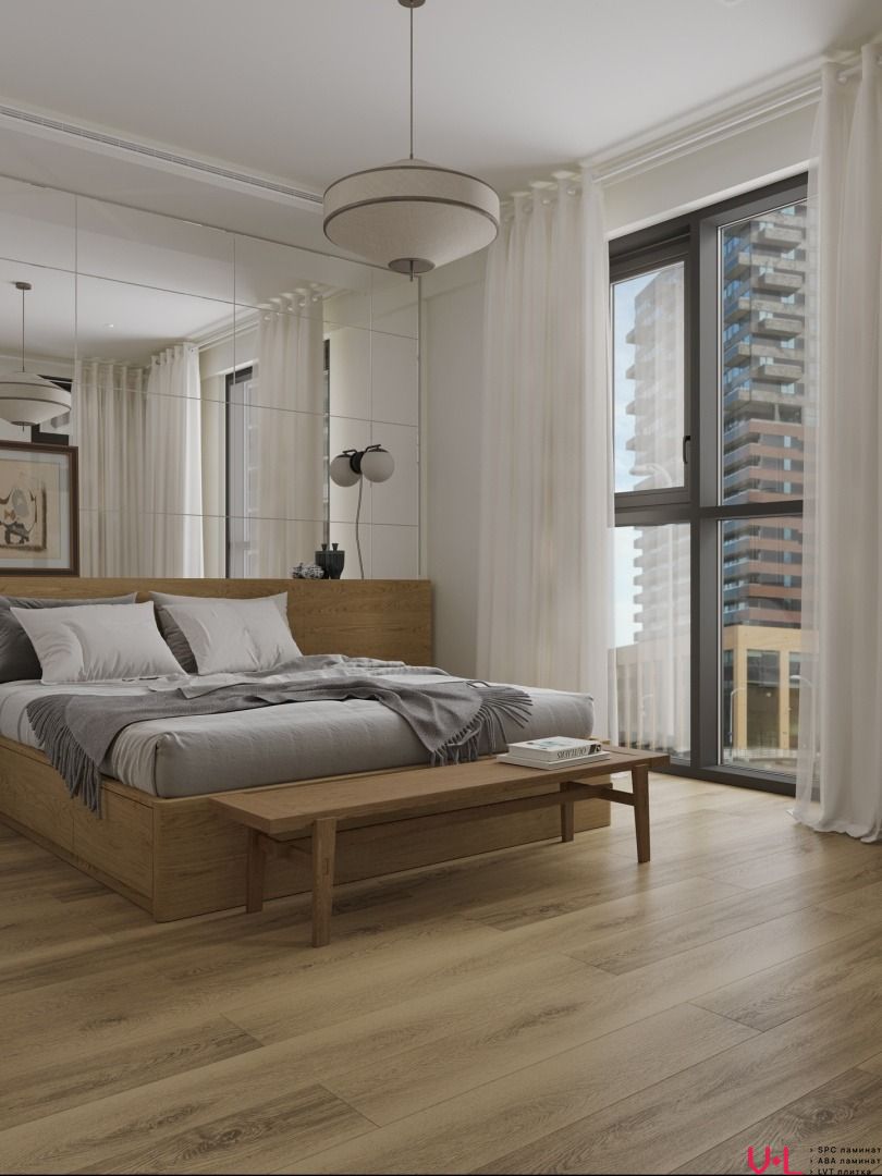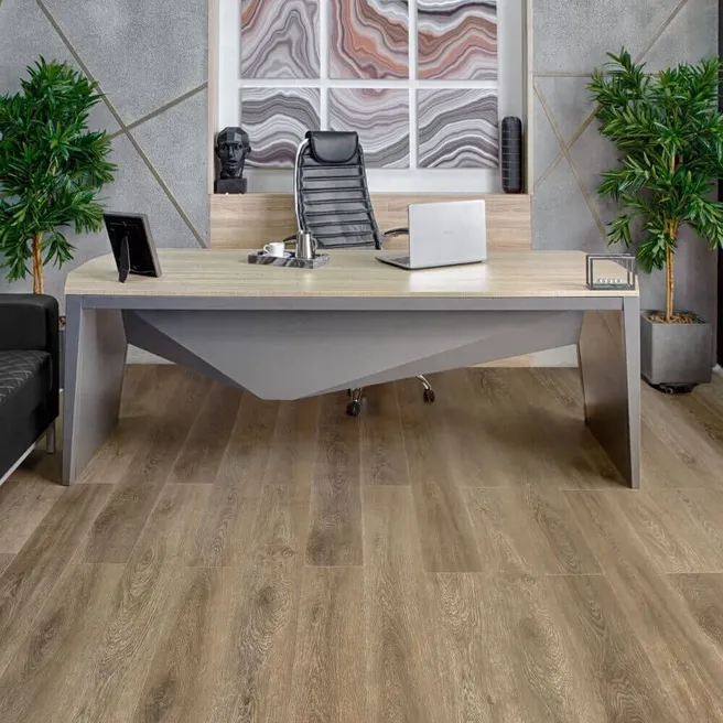 SPC ламинат толщиной 5,0 мм имеет 43 класс износостойкости, что делает его исключительно прочным и долговечным материалом. Он подходит для использования в кухне, спальне, гостиной, детской, коридоре, ванной и офисе благодаря своей устойчивости к влаге и царапинам. Благодаря лаконичному дизайну под дерево и натуральному оттенку ламинат будет хорошо смотреться в разных интерьерах.