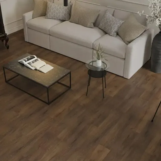 Элегантный дизайн с текстурой натурального дерева создает в интерьере атмосферу уюта и тепла. Отсутствие фаски придает полу целостный и современный вид, облегчая процесс уборки. Для укладки используется надежный клеевой метод, обеспечивающий прочное сцепление с основанием.