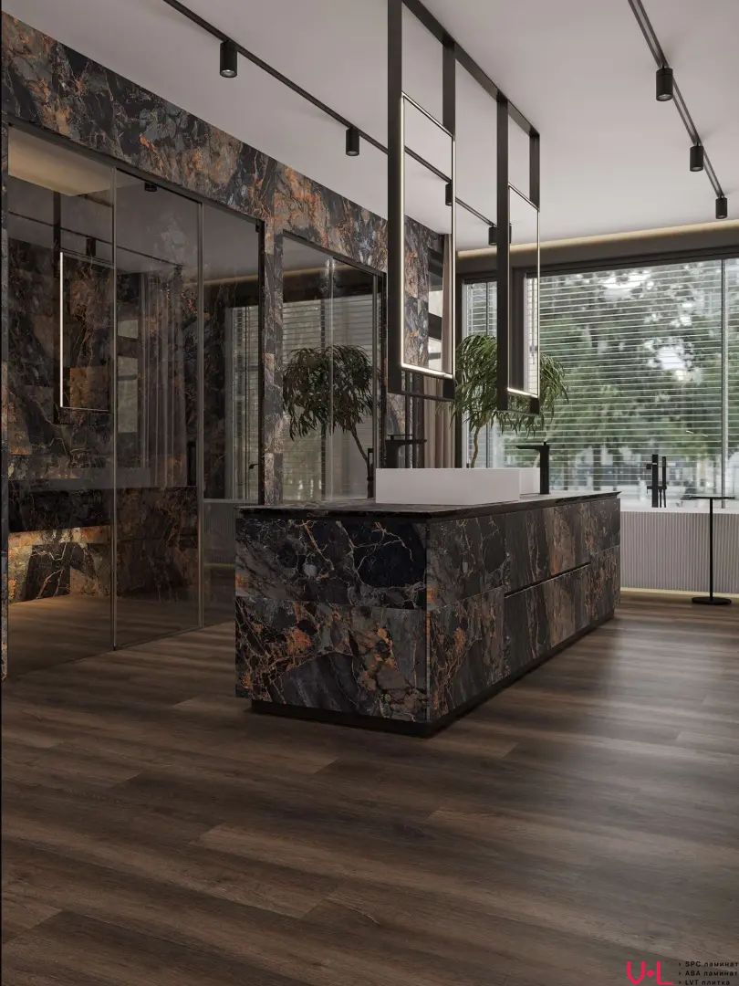 Толщина плитки составляет 2 мм, что облегчает процесс укладки. Прочное сцепление с основанием обеспечивается за счет клеевого способа монтажа. Защитный слой 0,3 мм эффективно предохраняет покрытие от бытовых повреждений и упрощает уборку. Отсутствие фаски создает гладкую, однородную поверхность, визуально расширяя пространство.
