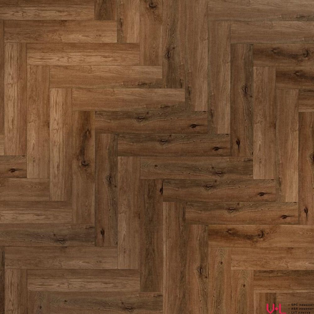 Ламинат относится к коллекции Alta Step Mirada, дизайн представляет собой ёлочку. Напольное покрытие выполнено в темно-коричневом цвете, с имитацией дерева дуба. По периметру досок предусмотрена фаска. Покрытие устойчиво к царапинам и может выдерживать температуру до +28 °C. Это обеспечивает совместимость с системой «тёплый пол».