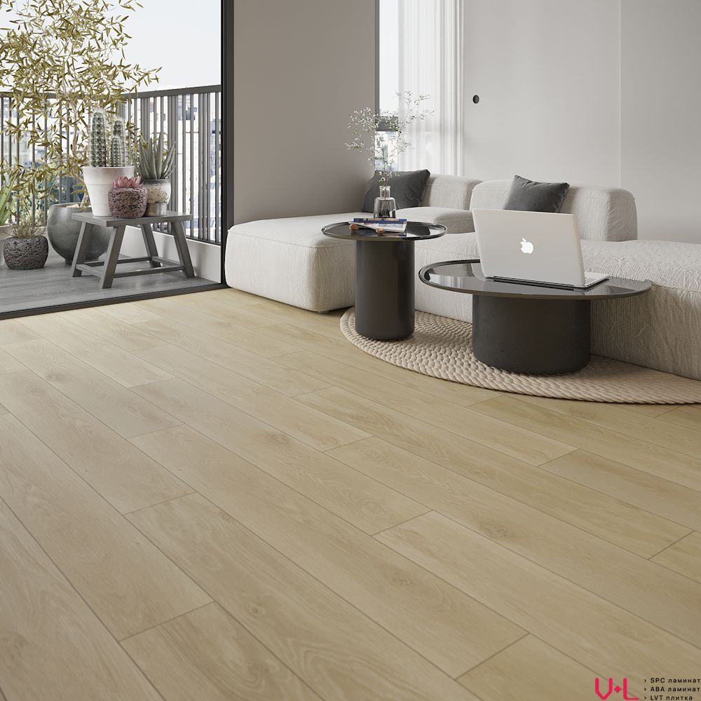 Толщина защитного слоя составляет 0,5 мм, обеспечивая надёжную защиту от механических повреждений и пятен. Наличие фаски по краям придаёт плитке завершённый вид и маскирует небольшие неровности пола. Плитка не имеет синхронного тиснения, но обладает защитой от царапин, сохраняя свой первозданный вид на протяжении долгого времени.