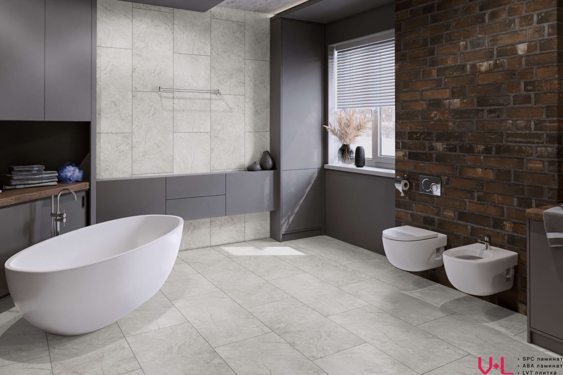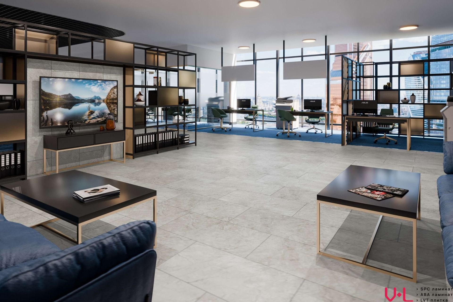 У покрытия есть фаска, это позволяет создать имитацию паркета. Синхронное тиснение верхнего слоя кварцвинила обеспечивает совпадение рисунка и текстуры, благодаря чему создаётся впечатление натурального камня. Ещё одно достоинство этой кварцвиниловой плитки — она монтируется клеевым способом.