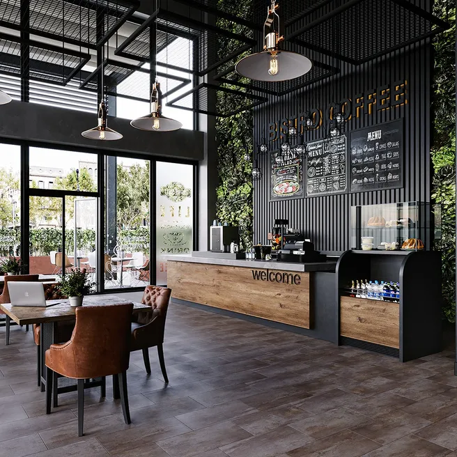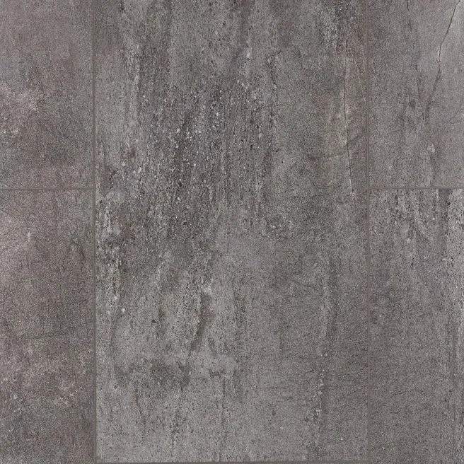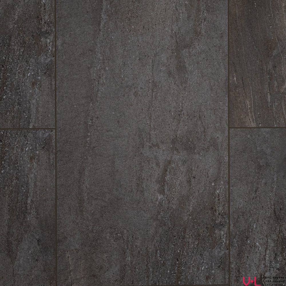 Плитка выполнена в тёмно-коричневом цвете с дизайном под камень. Благодаря защитному слою толщиной 0,55 мм, плитка не боится влаги и царапин. Она легко монтируется на клей к основанию пола. Синхронное тиснение на поверхности плитки делает её ещё более реалистичной. Плитка также обладает фаской по периметру, что позволяет создать эффектный интерьер.