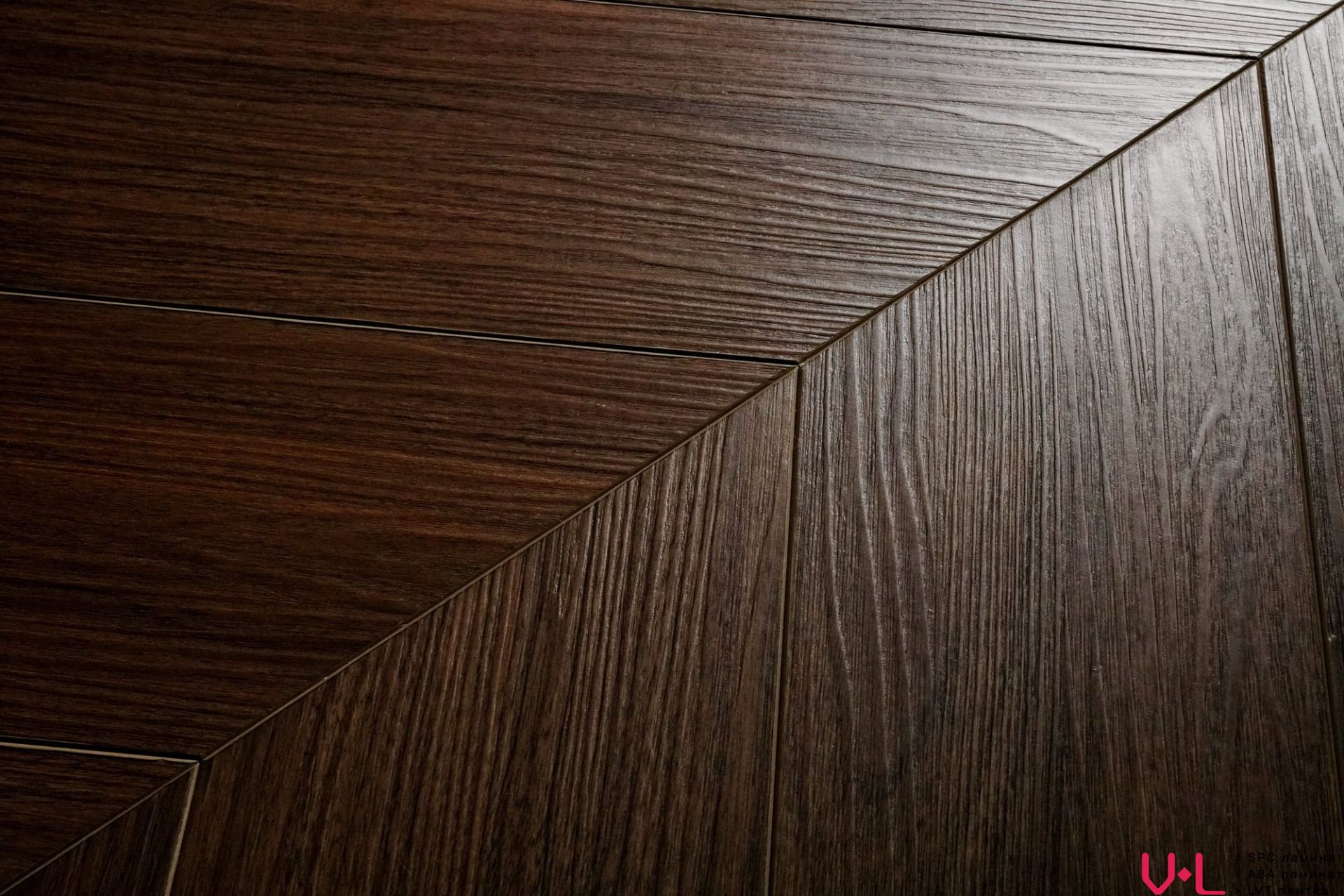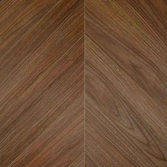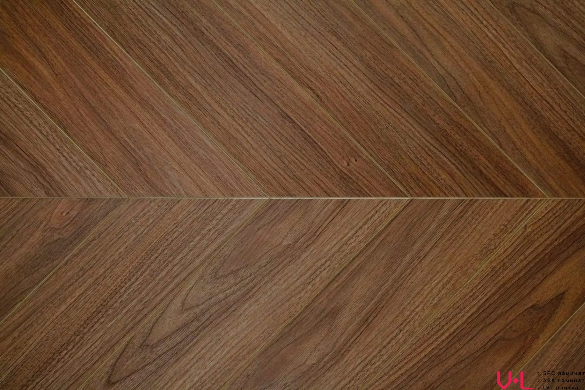 Толщина ламината составляет 5 мм, а класс износостойкости — 43, что гарантирует долгий срок службы напольного покрытия даже в условиях интенсивной эксплуатации. Цвет ламината — тёмно-коричневый, что делает его стильным и универсальным выбором для любого интерьера. Дизайн ламината выполнен в виде ёлочки, а наличие фаски придаёт ему элегантный вид и дополнительную защиту от повреждений. Синхронное тиснение обеспечивает полное совпадение рисунка и текстуры на поверхности ламината.
