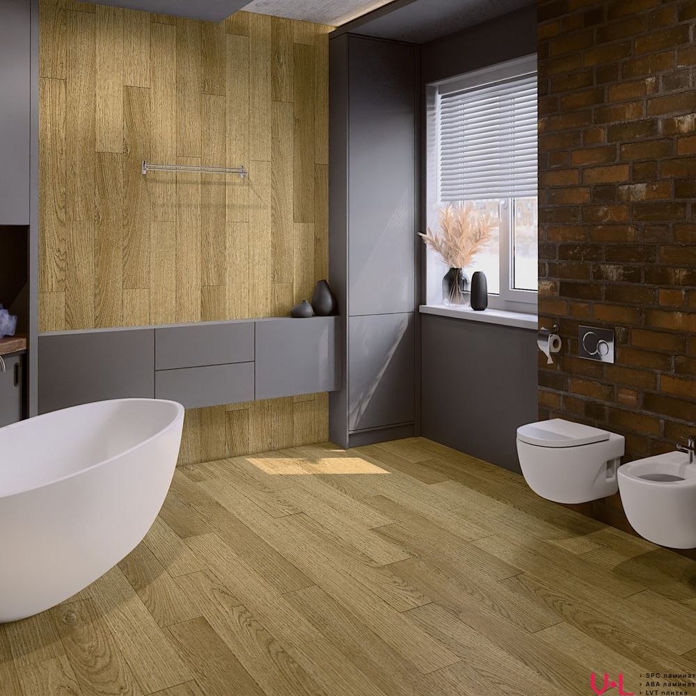 Теплый золотисто-медовый оттенок с благородной текстурой дуба придает помещению атмосферу уюта, солнечного света и особого шика. Богатый декор с выразительным рисунком древесных волокон и мягким глянцевым блеском делает этот пол центральным элементом интерьера, великолепно сочетаясь как с классической мебелью, так и с современными дизайнерскими решениями.