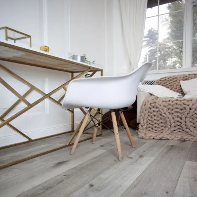 Кварцвиниловая плитка Damy Floor Family LVT Дуб Состаренный Серый T7020-5D-LVT — это современное и практичное напольное покрытие, успешно имитирующее благородную текстуру состаренного дуба в сероватых тонах. Модель T7020-5D-LVT воспроизводит не только визуальный рисунок древесины, но и её тактильный рельеф, включая характерные поры и структуру волокон, что создает полное ощущение натуральности.