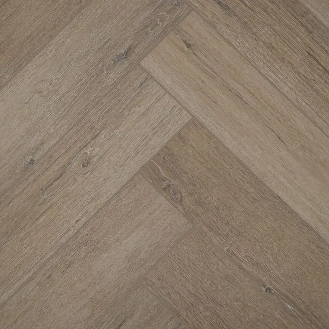 Эта плитка обладает повышенной износостойкостью благодаря своему классу прочности 43, что делает её отличным выбором для помещений с высокой проходимостью, таких как офисы или общественные места. Коричневый цвет и дизайн «ёлочка» делают эту плитку идеальным вариантом для стильного оформления пола в любом интерьере. Тиснение и фаска создают эффект натурального дерева.