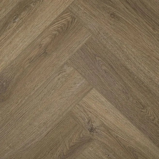 Толщины плитки в 2,5 мм вполне достаточно для обеспечения прочности и устойчивости к механическим воздействиям. Коричневая плитка имеет дизайн «ёлочка» и синхронное тиснение, что придает ей реалистичный внешний вид и обеспечивает дополнительную прочность за счёт рельефности покрытия.