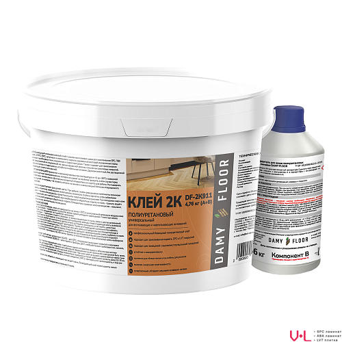 Клей двухкомпонентный Damy Floor DF-2К911 для паркета, SPC и LVT покрытий 4,76 кг (А+В)