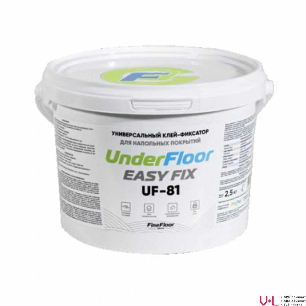 Клей-фиксатор Easy Fix UF 81 от производителя UnderFloor — это универсальное средство, предназначенное для приклеивания винилового ламината на различные типы оснований. Он подходит как для впитывающих (таких как дерево), так и для невпитывающих поверхностей (например, кафель). Основой этого продукта является сополимерная дисперсия.