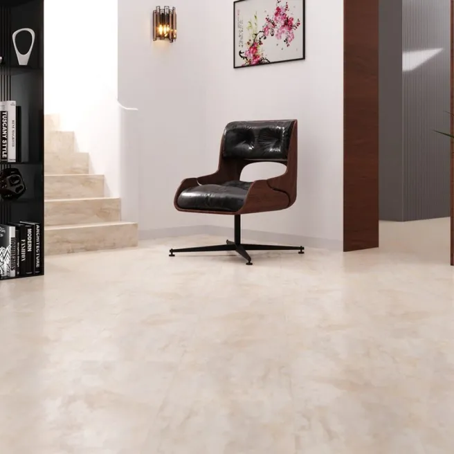 Плитка представлена в бежевом цвете и имеет дизайн под камень, что позволяет создать уникальный и стильный интерьер. Способ монтажа бесклеевой (на замках) обеспечивает лёгкость и быстроту укладки. Плитка также устойчива к воздействию влаги и может быть использована в различных помещениях: на кухне, в спальне, гостиной, детской, коридоре, ванной или офисе. Её можно использовать даже при наличии системы тёплого пола, максимальная температура которого не должна превышать +28 °C.