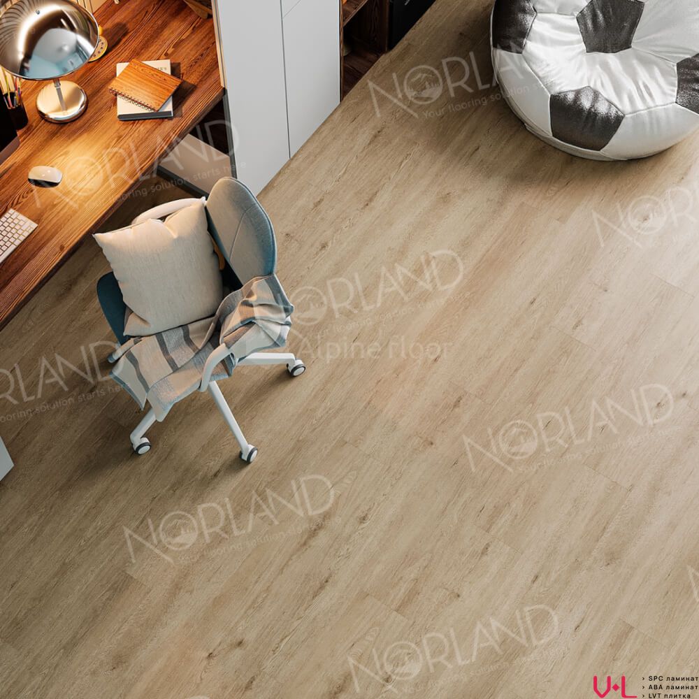 Бежевая цветовая гамма и дизайн под дерево делают плитку Norland Sigrid LVT стильным и универсальным выбором для любого интерьера. Особенностью этой плитки является наличие фаски, которая придаёт покрытию более естественный вид и делает его похожим на натуральное дерево. Такой декоративный элемент также помогает скрыть небольшие неровности и дефекты пола.