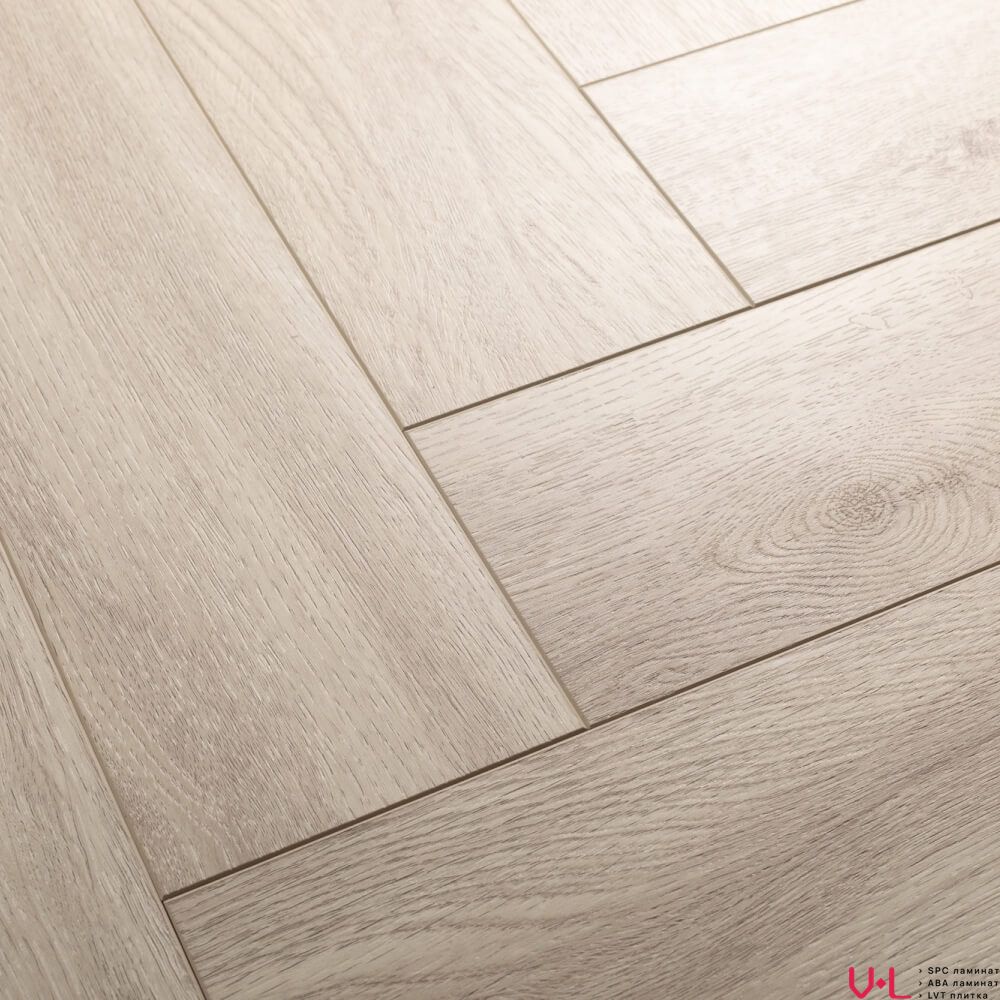 Ламинат имитирует древесину дуба, создавая эффект паркета. Бежевый цвет идеально впишется в интерьер, выполненный в светлых тонах, и добавит пространству уюта и тепла.