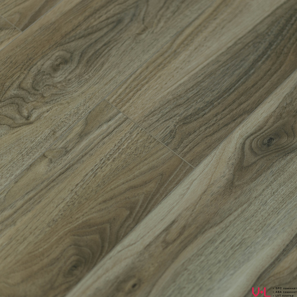 Ламинат обладает толщиной 6 мм и относится к 33 классу износостойкости, что делает его подходящим для помещений с высокой проходимостью. Он выполнен в тёмно-коричневом цвете под дерево орех, имитируя естественную красоту древесины. Благодаря замковому соединению монтаж ламината производится без использования клея, что упрощает процесс установки.