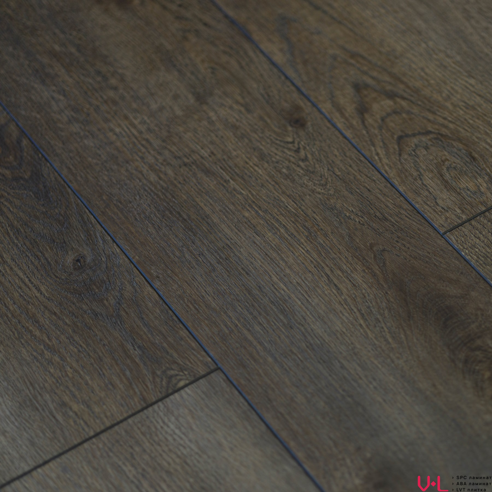 Этот ламинат имеет толщину в 4,5 мм и подходит для монтажа на полы с подогревом, максимальная температура которых может достигать +80 °С. Также он обладает полной водостойкостью, что делает его идеальным выбором для ванной комнаты. Ламинат выполнен под дерево в темно-коричневом цвете, который отлично подойдёт для создания тёплой и уютной атмосферы в любом интерьере.