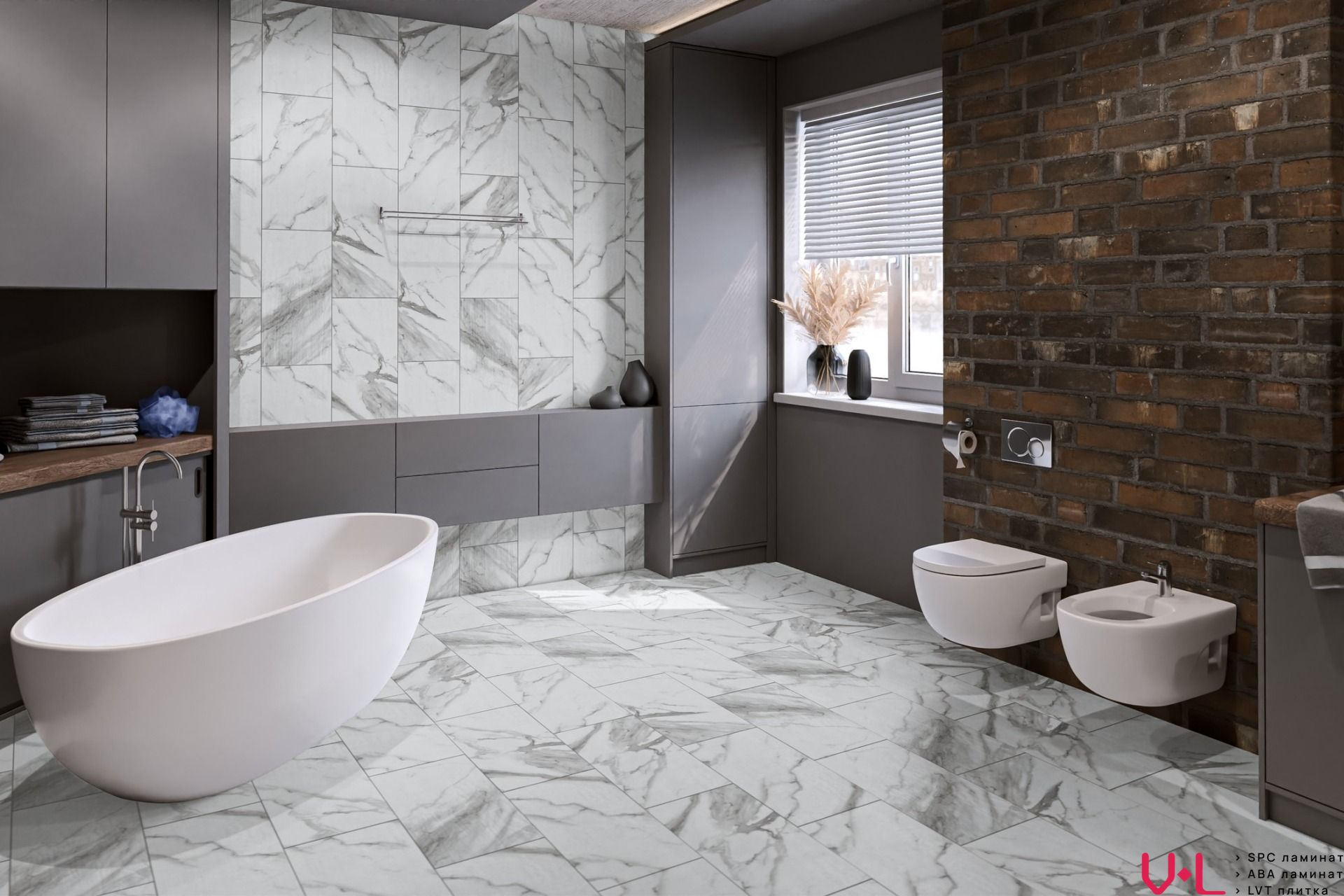 Одна из ключевых характеристик данного покрытия — его толщина в 5 мм. Это обеспечивает дополнительную прочность и устойчивость к износу, что особенно важно для помещений с высокой проходимостью. Верхний защитный слой в 0,55 мм гарантирует защиту от царапин и других механических повреждений, а также обеспечивает лёгкость в уходе и уборке. Кроме того, синхронное тиснение позволяет достичь максимального сходства с натуральным камнем, придавая полу естественный и привлекательный вид.