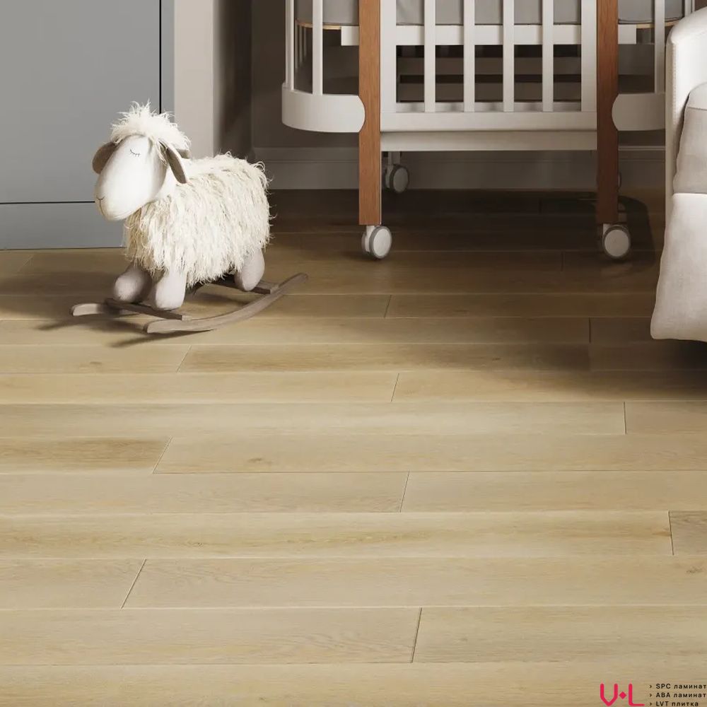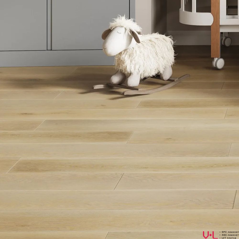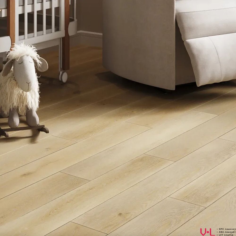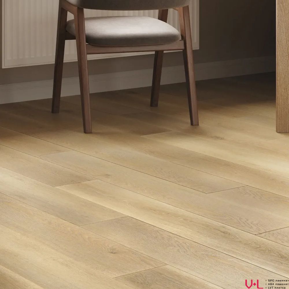 - Сердцевина повышенной плотности: В основе ламината лежит сверхплотная каменно-полимерная композиция SPC плотностью 2000 кг/м³. Эта плотность обеспечивает абсолютную устойчивость к ударам, давлению от тяжелой мебели и гарантирует стабильность геометрических размеров при любых перепадах температуры и влажности.