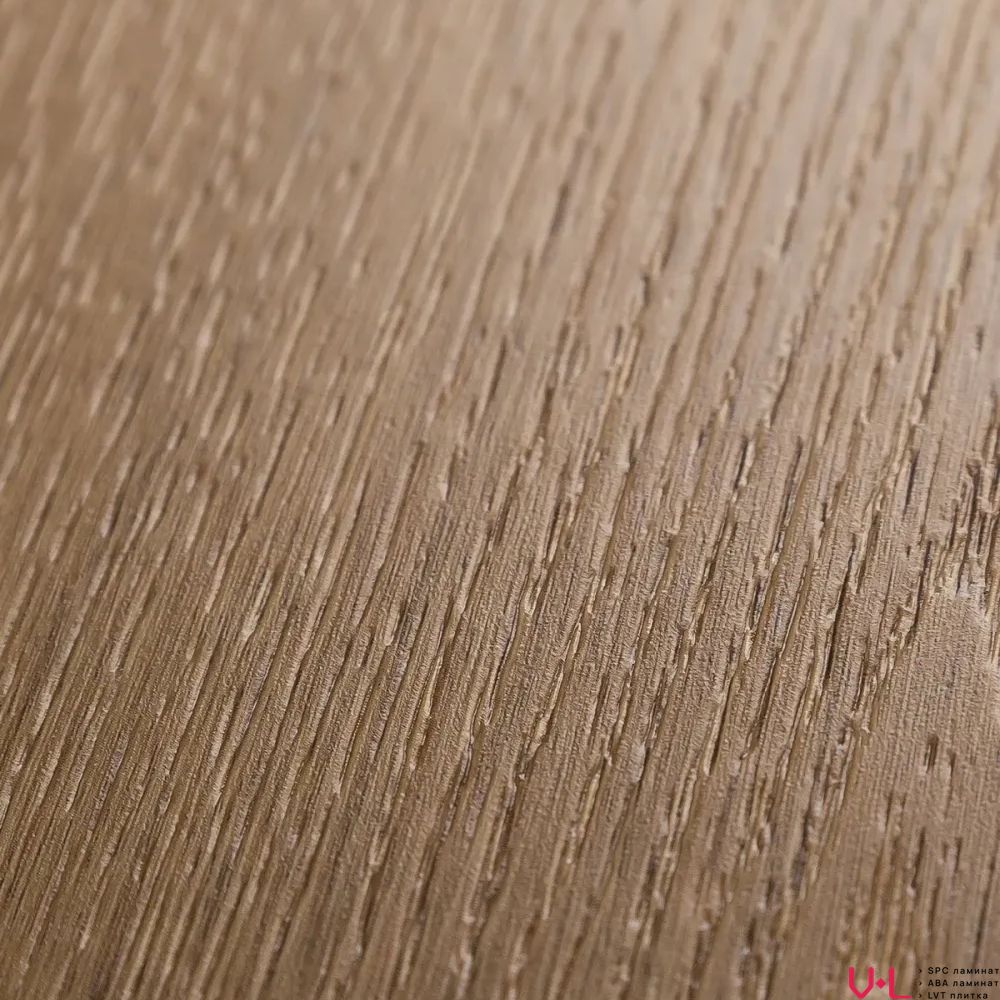 - Безупречная текстура отборной древесины: Поверхность ламината обладает идеально выверенным рельефом и благородной матовостью, которые тактильно и визуально передают элитарность отборного дуба. Насыщенный коричневый оттенок создает в интерьере атмосферу респектабельной роскоши и сдержанной элегантности, лишенную малейшего намека на искусственность.