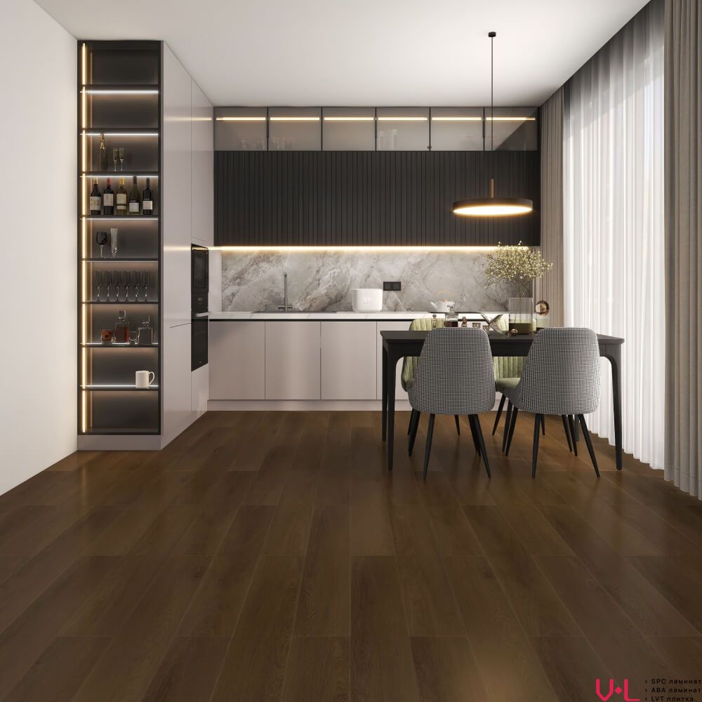 SPC ламинат Hoi Flooring Pekin Цинь 3033016PK выдержан в темно-коричневой гамме с яркой древесной структурой и фаской по периметру. Надежный защитный слой с отличным воспроизведением текстуры древесины имеет антискользящие свойства и не выгорает на солнце. Прочность и долговечность в сочетании с реалистичным воспроизведением древесного рисунка отлично согласовываются с абсолютной водостойкостью.