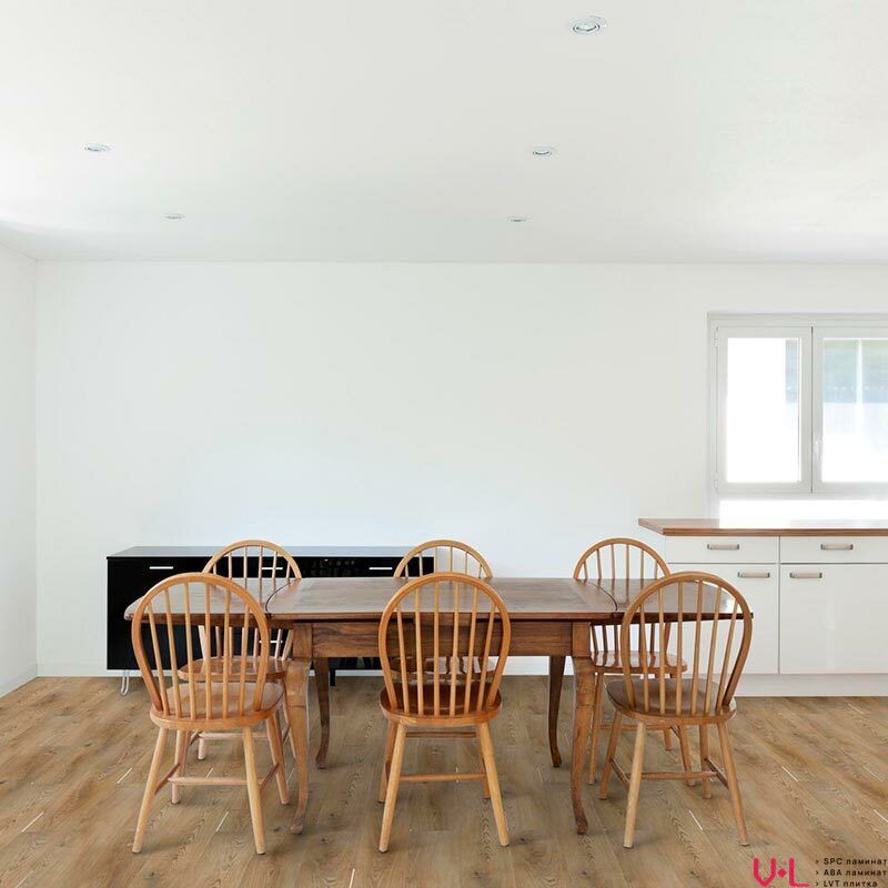 Влагостойкость: Благодаря технологии SPC (каменно-полимерный композит) ламинат устойчив к воздействию влаги, что позволяет использовать его в кухнях, ванных комнатах и других помещениях с повышенной влажностью.
