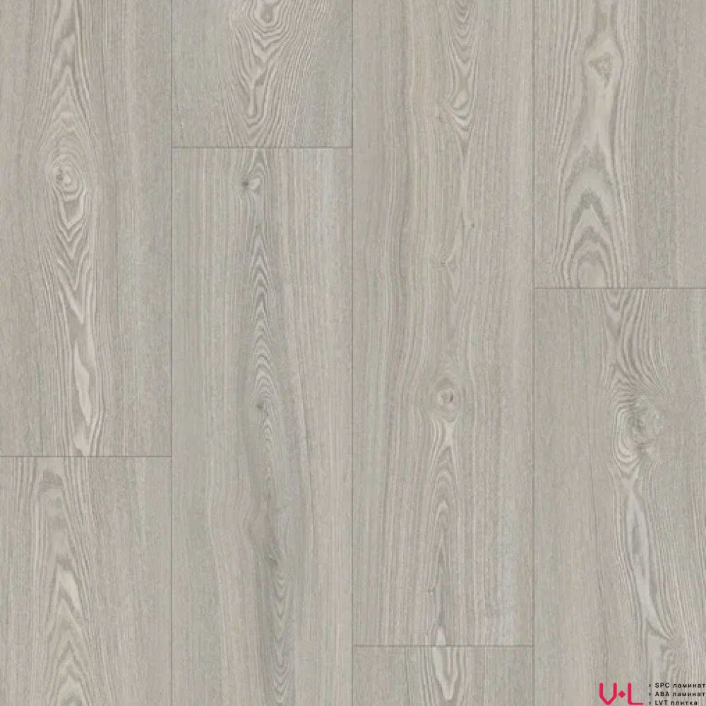 Цвет ламината – серый, с дизайном под дерево.Одна из особенностей этого ламината – наличие фаски, которая придаёт покрытию вид натурального деревянного пола. Также предусмотрена встроенная подложка, что обеспечивает дополнительную звукоизоляцию. Ламинат легко монтируется благодаря замковому соединению.
